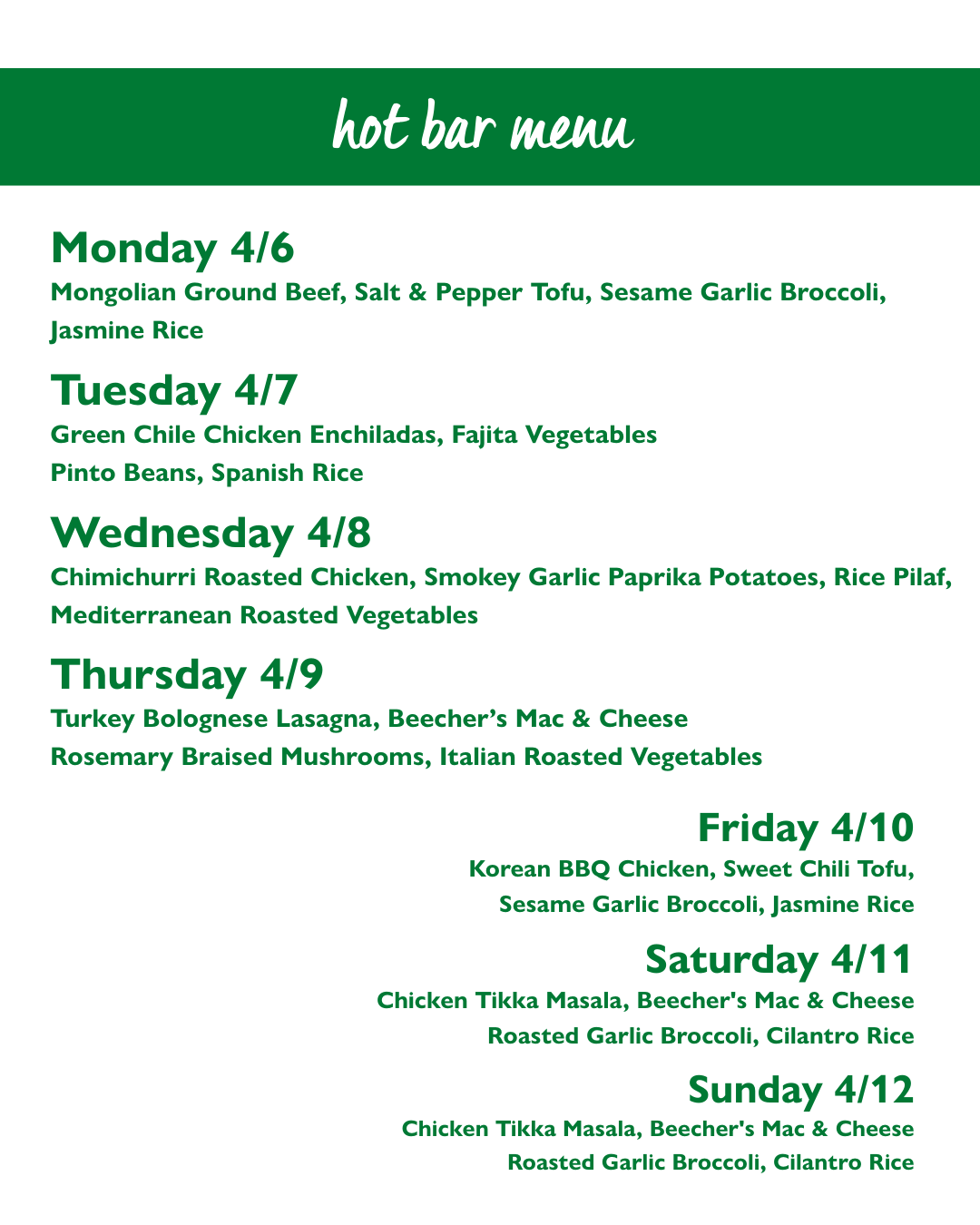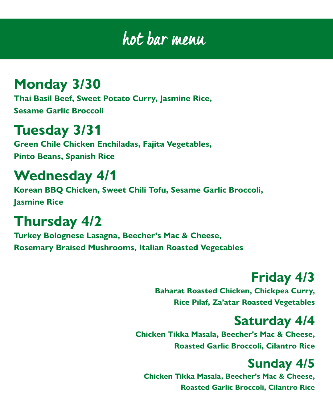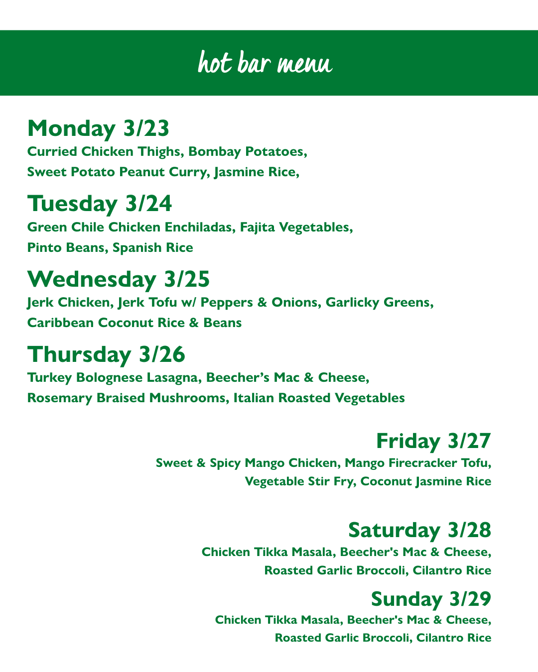Hot Bar Menu